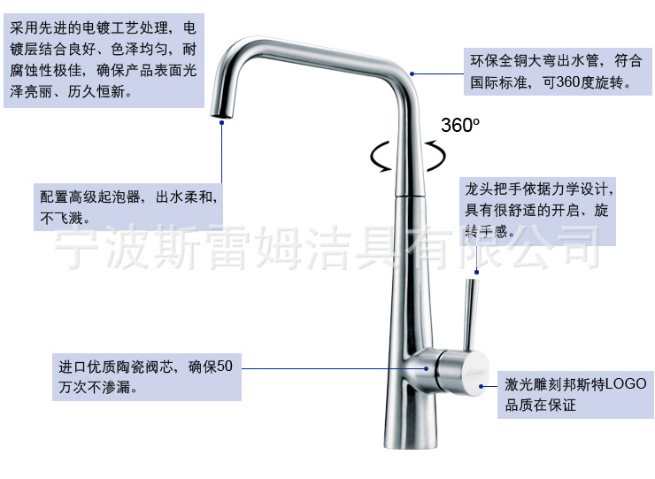 四、龙头出水口采用独特起泡软化过滤处理,出水时不会喷溢、降噪音