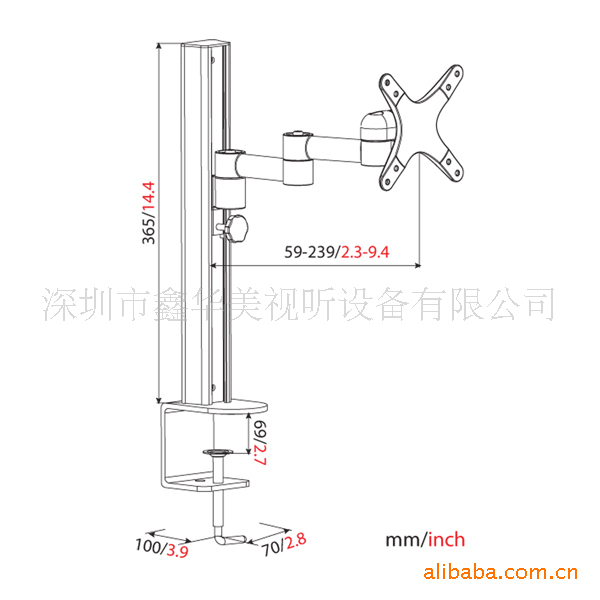 适合显示器尺寸:13寸-27寸(33-69厘米)最大承重:桌面:10千克,墙面:15千克