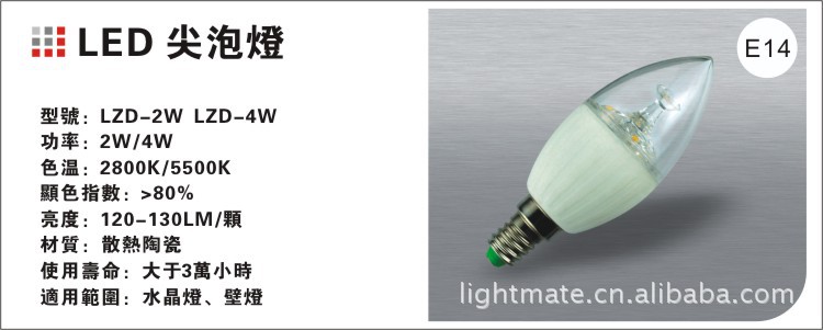调光led led尖泡 led蜡烛泡2W 最新led产品 陶瓷led led厂家