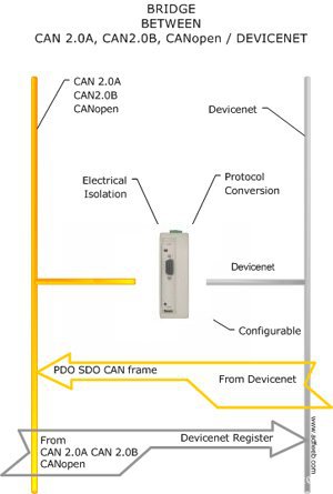 本网关支持到CANopen的双向通信。通过简单的配置及自动生成的EDS文件可快速实现用户的应用。