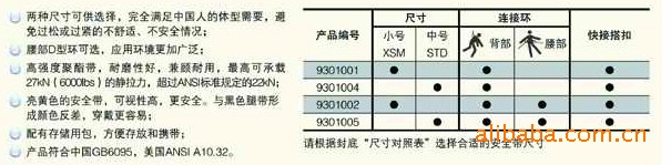 •产品符合中国标准GB6095,欧洲标准EN361,美国标准ANSI A10.32,OSHA相关要求