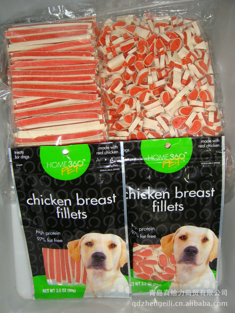 | 工艺:精选选优质鸡肉泥 鳕鱼皮 经特殊工艺 烘烤而制成 富含靓毛成分 |