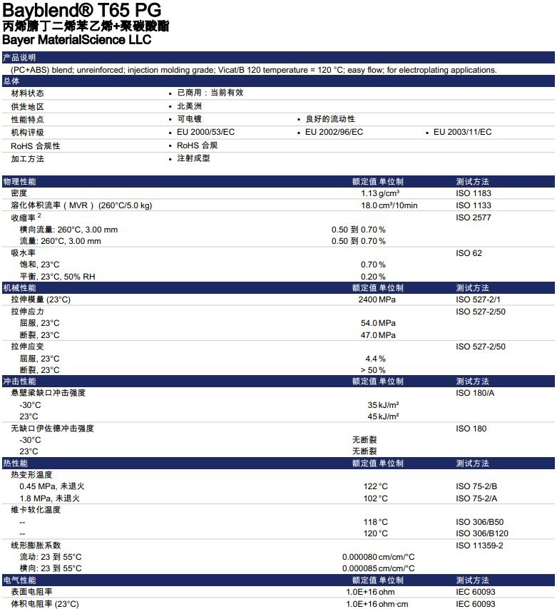 PC/ABS/德国拜耳/T65 PG