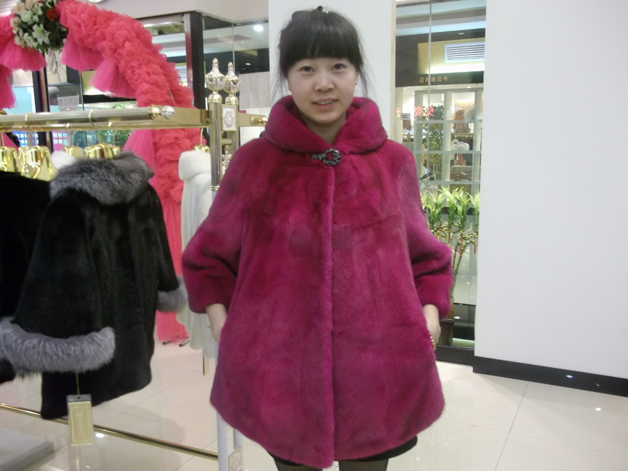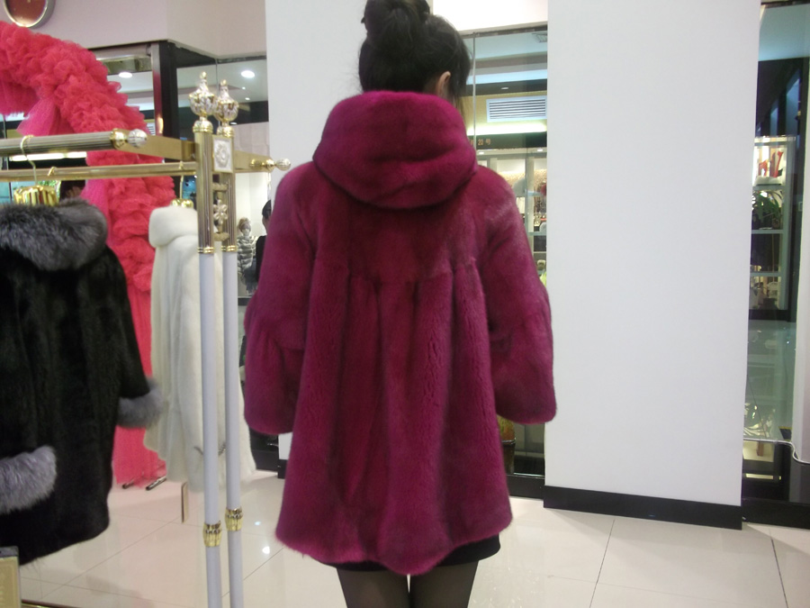 这款时装款的玫粉色七分袖连帽款采用美国进口水貂母貂手工精心制作而成,月牙 的底边设计让衣服更有风情,七分袖的紧边可以搭配很多种不同的衣服,素有百变之 风,亲 我们来看看衣服的整体效果