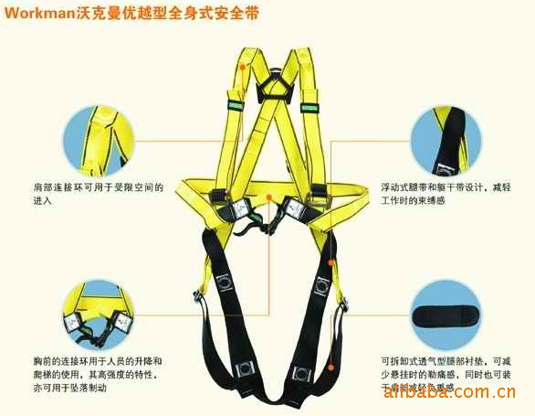 | 产品说明 | workman 沃克曼优越型主要应用于需要升降作业的场所; 胸前的连接环用于人员的升降和爬梯的使用,肩部连接环可用于受限空间的进入; 高强度的胸前连接环,可用于坠落制动; 浮动式腿带和躯干带设计,减轻工作时的束缚感; 产品符合中国标准GB6095-2009,欧洲标准EN361 |
