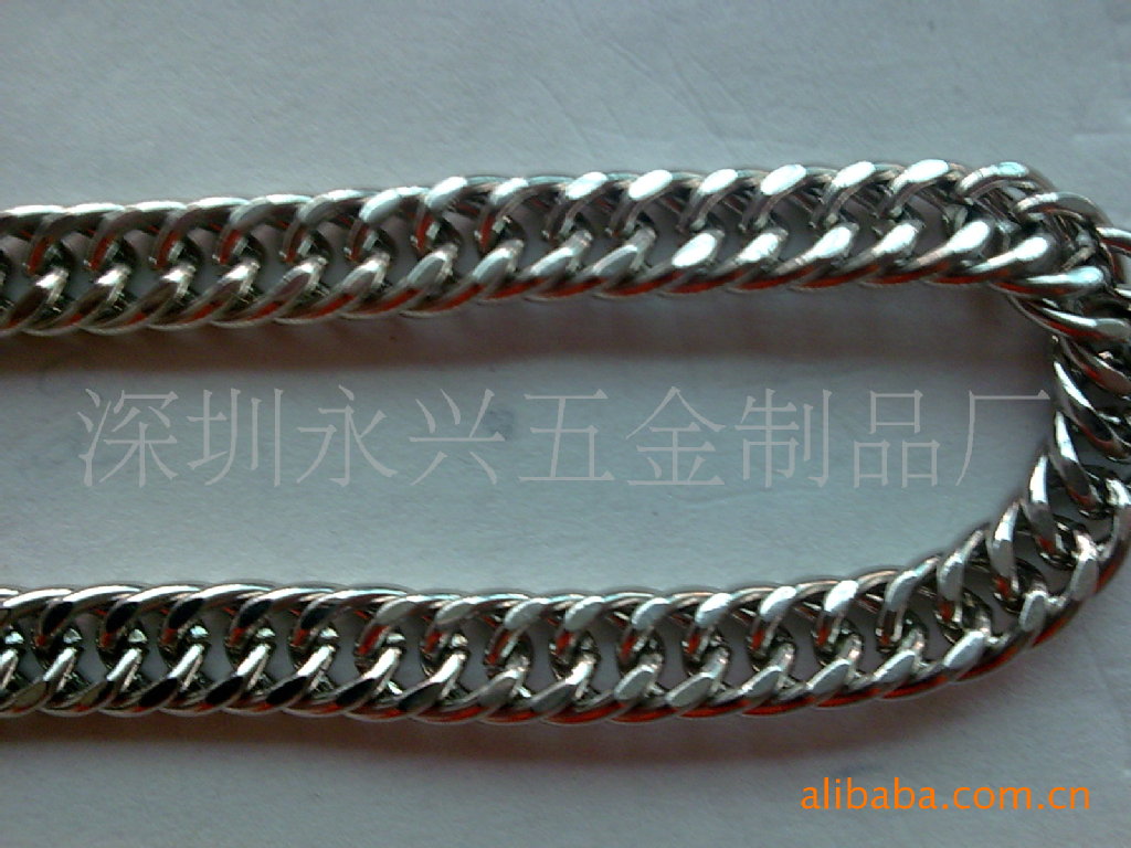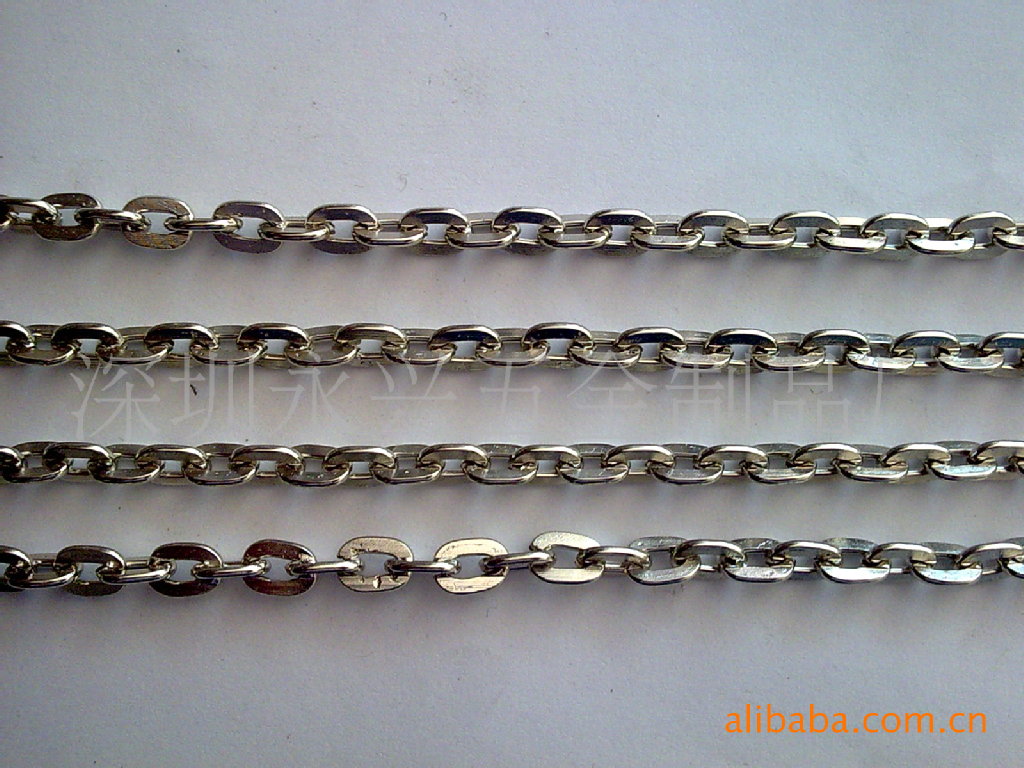 本公司是一家专业生产,链条、珠链、不锈钢链、环保链条、韩国链、铁链、铜链、铝链、开口圈,铁开口圈,铜开口圈,圆圈,环保圈,不锈钢开口圈,孖圈,锌合金扣,狗扣,,品厂自主开发生产的合金扣有几十种,品种丰富,款式新颖,工艺精良,质量上乘。,电镀光滑(无麻点,划痕,起泡等现象)、弹力十足,比同产品重,广泛适用于玩具、箱包、手袋、服饰、饰品、礼品、灯饰、文具、家具、电子、首饰、鞋帽、精品、工艺品等产品。产品均由自己生产,自己电镀,能够最大限度的保证产品的质量,加快出货速度,追求质量优良,供货快速