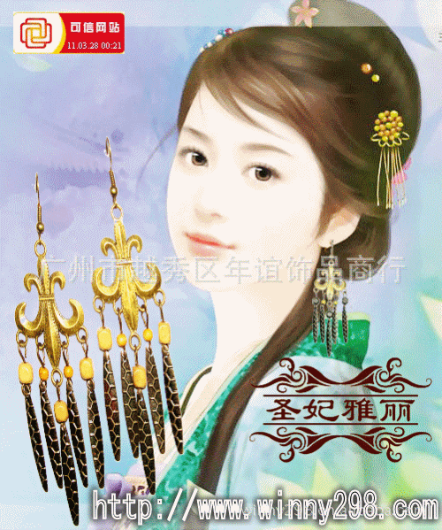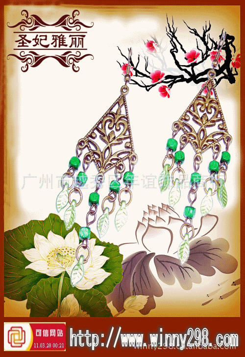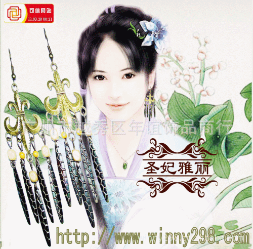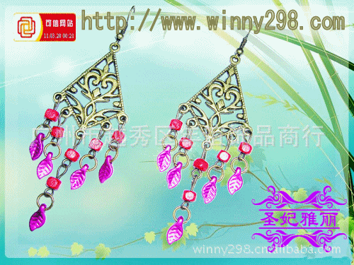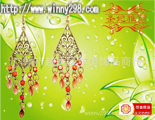 特色:《圣妃雅丽》古典耳环—魅力之美,韵在自然。让你戴出独特品味! | 颜色:多色 | 支持:100对起可混批 |