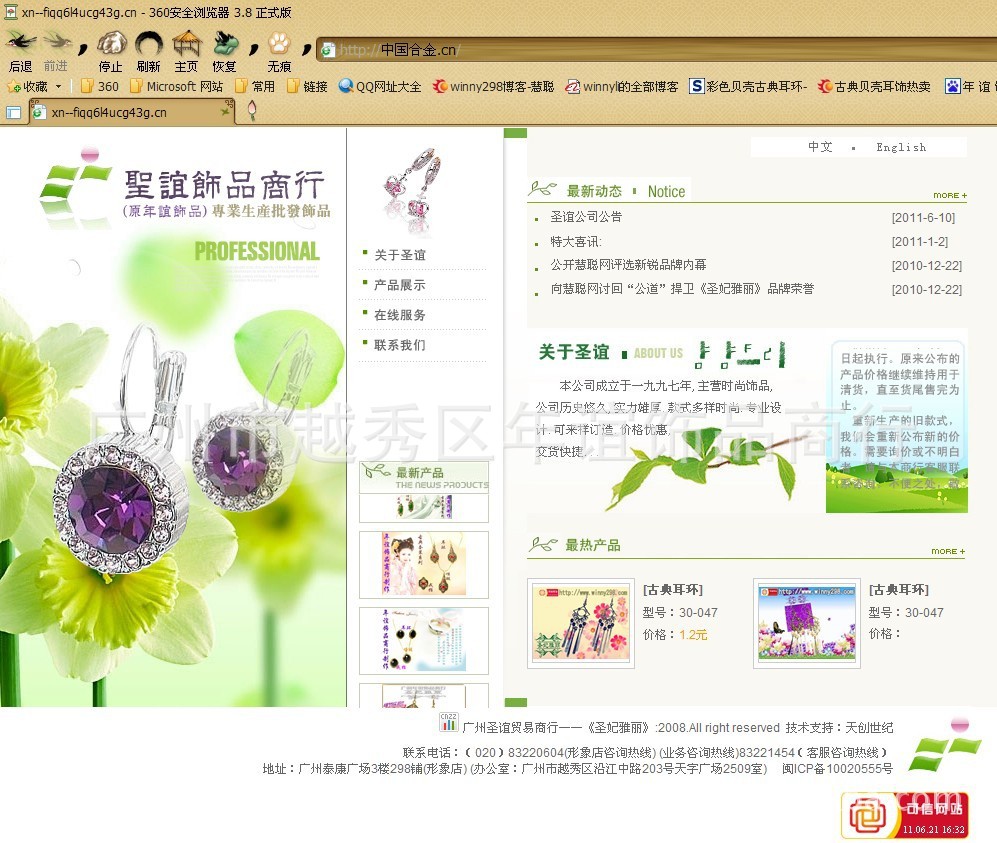 原年谊现更改为广州圣谊贸易商行,是一家坚持走手工制作《古典耳环》路线的供应商,并品牌《圣妃雅丽》古典耳环,拥有30个独立《域名》、6个《通用网址》与《可信网站服务证书》。尤以古典耳环产品风格时尚高雅,自然大方,把女性的气质,女人的韵味,成功女士的尊贵,充分展示出来,将女性独特之魅力雕饰至完美无暇。公司独立网站:实体店已正式启用QQ视频,可直接让客户如同亲临本店购货、观看产品,欢迎加盟商场客服QQ:1067546548 /主管QQ:1461142120李泳谊QQ:826254324 《圣谊贸易商行》全体同仁将以更优质的热情、认真的服务态度对待每一位咨询客户,回报同行和客户的厚爱与信任,期待与你们的共同发展和合作。