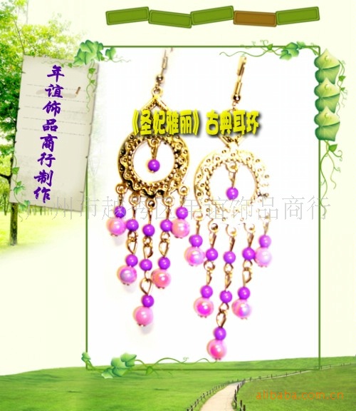 特色:《圣妃雅丽》古典耳环—魅力之美,韵在自然。让你戴出独特品味! | 颜色:多色 | 支持:100对起可混批 |