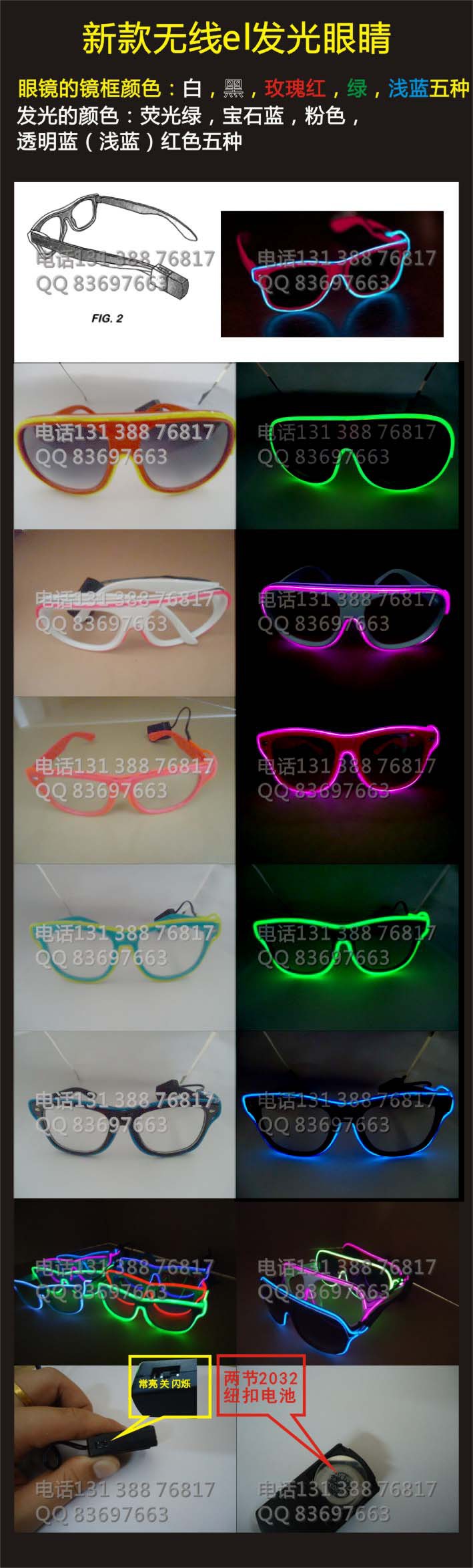 选用多种颜色眼镜配合高亮EL纯手工制作而成~