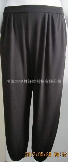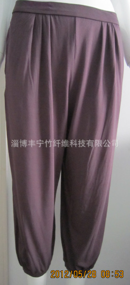 本款采用竹纤维面料,竹纤维是以高科技技术从竹子里面提取的一种纯绿色环保型纤维,竹纤维具有良好的透气性,瞬间吸水性和良好的染色性同时具有天然的抗菌,抑菌,除螨,防臭和抗紫外线功能,专家指出夏天着竹纤维衣物会比普通衣物温度低1-2度。本款宽松肥腿设计是为居家休闲的最佳选择