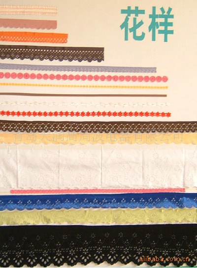 成衣花边、床套、枕套、裙边、睡衣、裙袍、被套头花、发饰、彩带、雨衣、鞋帽、旅行用品、包箱、台布、雨伞、窗帘、餐巾纸、食品袋、一次性手术衣、帽、口罩、商标、工艺品、装饰品等各种花式制品。