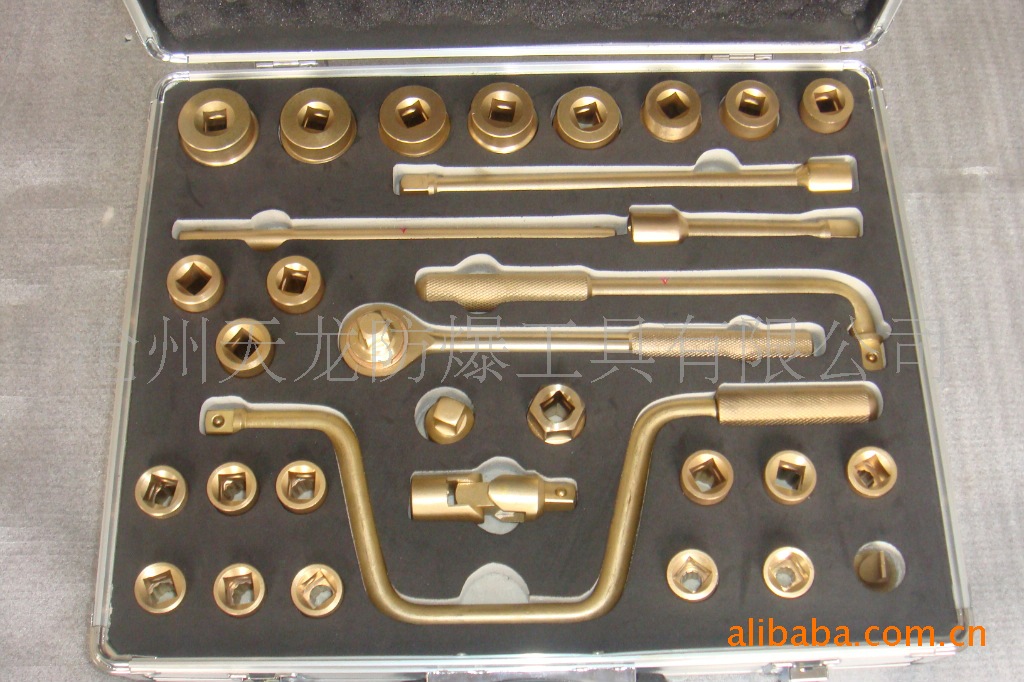 防爆工具主要有两种材质,铝青铜、铍青铜。采用镍铝、镍铍合金冶炼而成铍青铜工具属国家ⅡC级产品,在浓度为21%的氢气中作业不引爆气体;铝青铜工具属国家ⅡC级产品,在浓度21%的氢气气体中作业不引爆气体。因铍青铜材料磁性为零,所以铍青铜工具又称防磁工具,可在磁场环境安全作业。