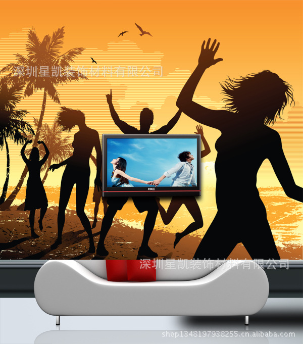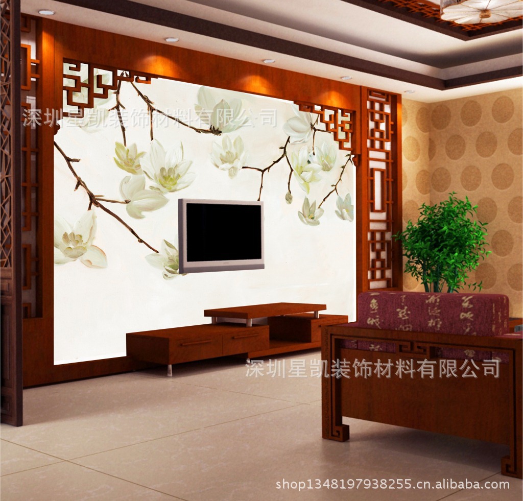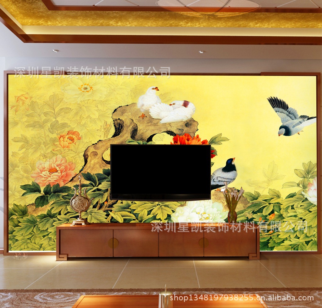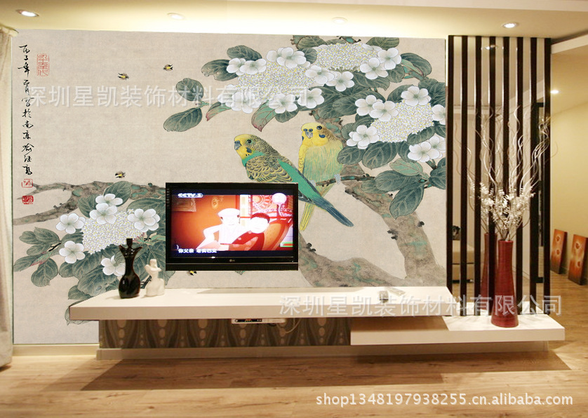 精美电视背景墙壁画效果图展示: