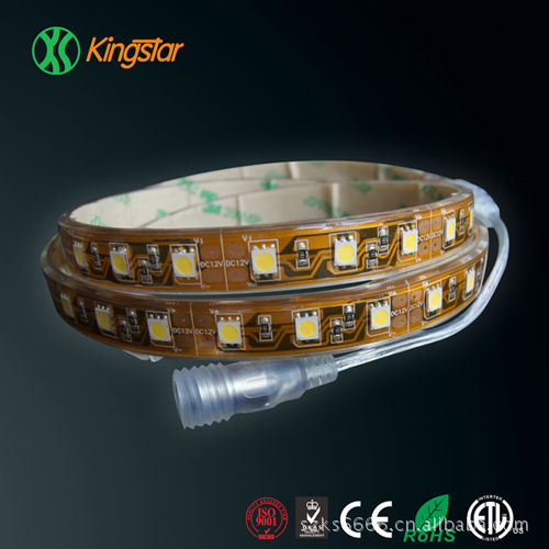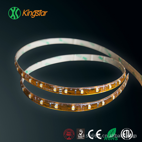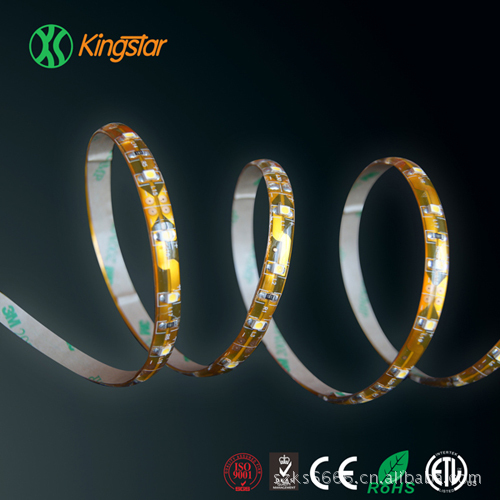 LED软光条采用非常柔软的PCB板为基板,高亮度贴片LED为发光体,发光角度>120度, 发光体均匀的分布在条型PCB板正面 , 外形非常纤薄小巧。每三颗LED组成一个回路,使用时可以沿着PCB上面的切线任意截断,背面带进口3M胶,用于粘贴。可随意弯曲,也可随意固定在凹凸不平的表面上。