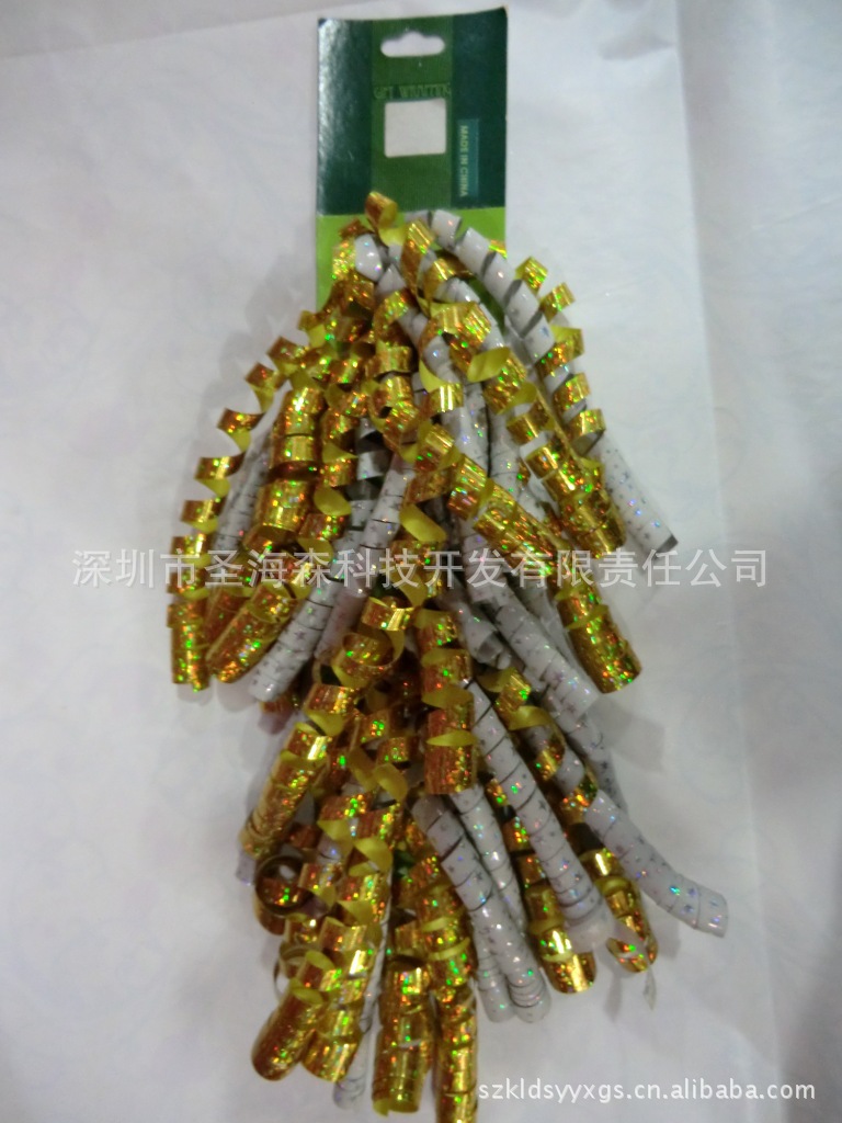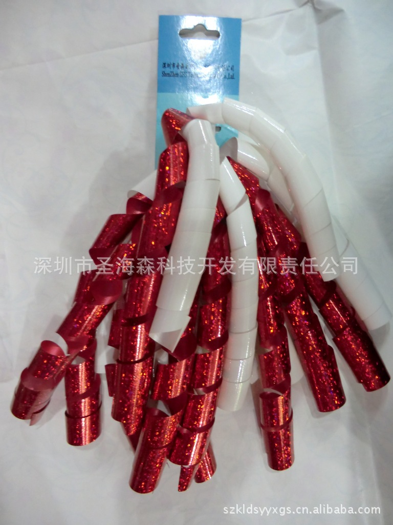 品名:卷卷花 规格:常用规格有:6mm*70cm 6mm*90cm 5mm*70cm 5mm*90cm 12条或24条 颜色:各种颜色都可做 材料:PP发泡彩带 包装:按客要求包装