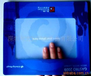 本厂是专业生产各类鼠标垫的厂家,可按照客户要求制作任意造型及印刷LOGO,结构分别有:EVA鼠标垫:下面EVA+上面彩色印刷过PVC磨砂;发泡橡胶鼠标垫:天然发泡橡胶+上面彩色印刷过PVC磨砂;PP塑料鼠标垫:直接印刷PP塑料上面;热转印布鼠标垫:采用发泡橡胶上面佳积布上彩色印刷,可根据客户的要求不同选择不同结构的鼠标垫,价格低廉,促销效果显著,是各企业促销之理想选择,欢迎随时来电来函咨询及索取样品参考。
