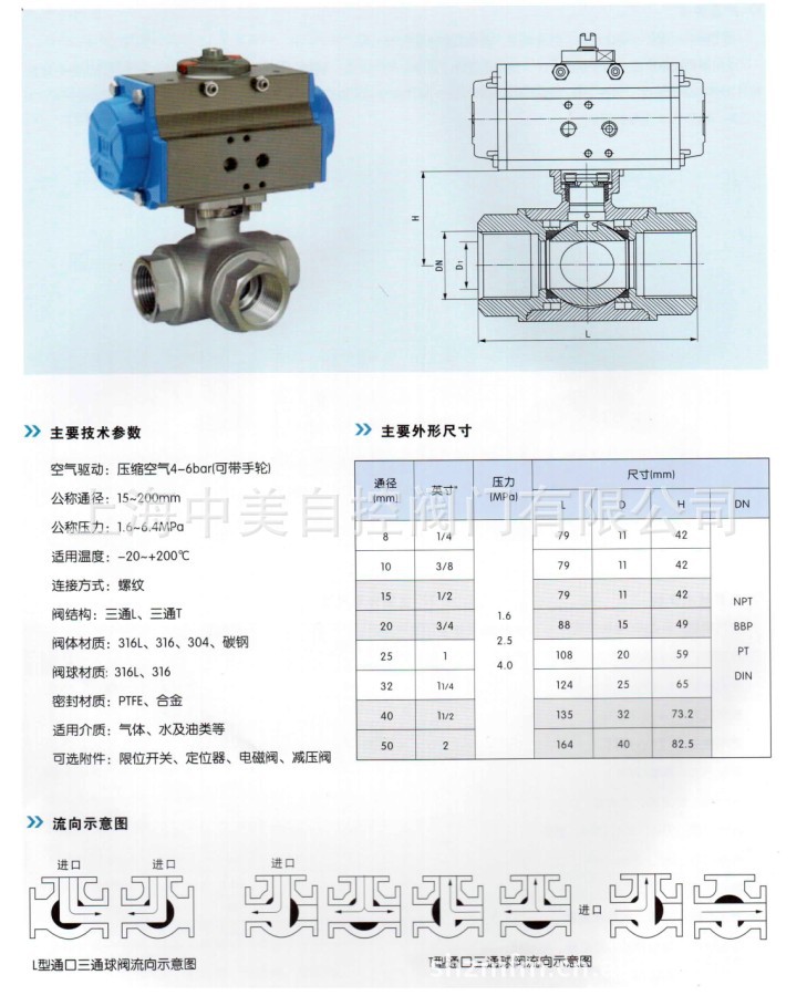 气动三通缧纹球阀