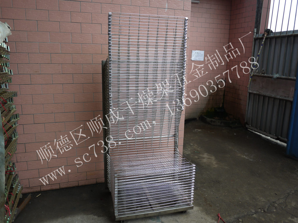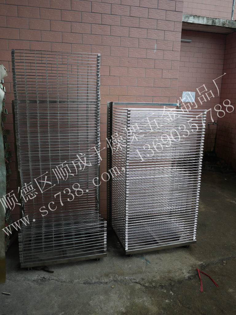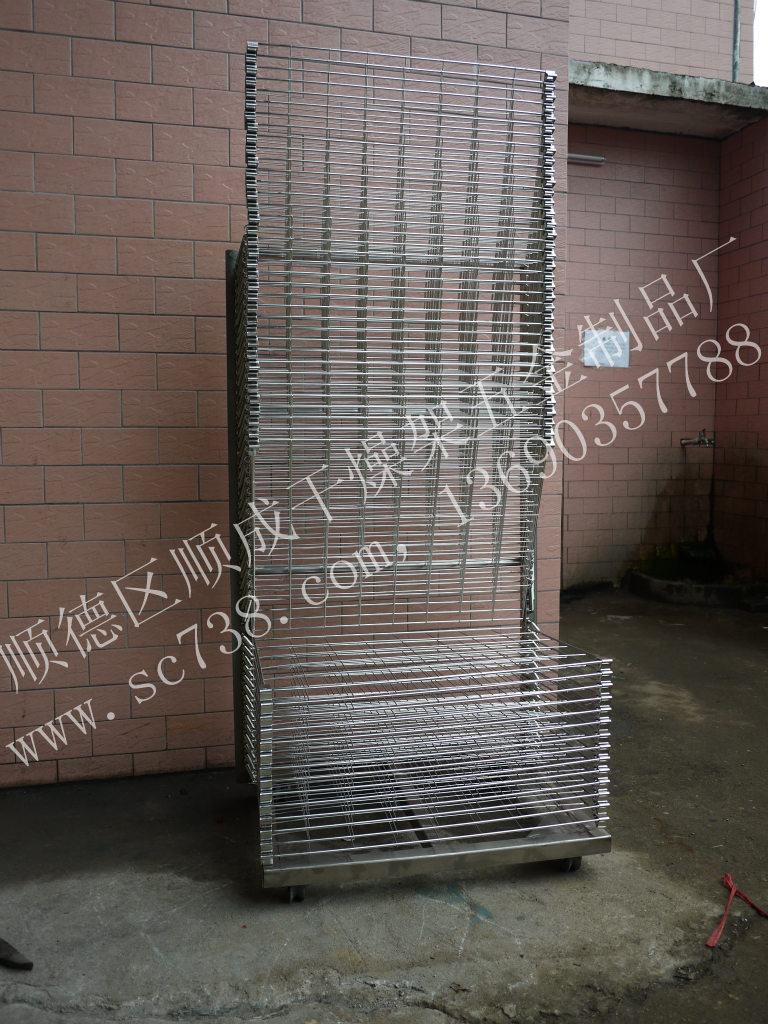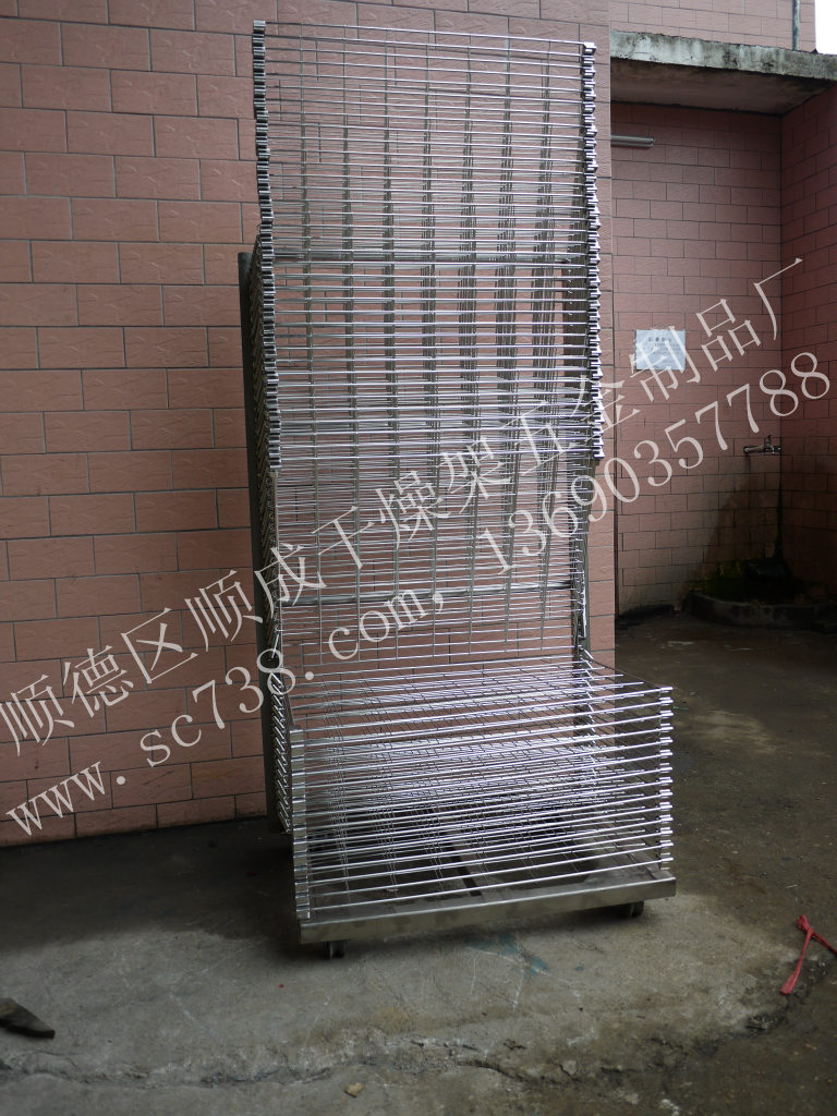 顺德品牌 顺成干燥架:镀锌干燥架、SUS不锈钢千层架、油墨晾干架,各种规格可定做,网片表面可分为镀锌,电解,镀铬镍,烤漆,浸塑PE或PVC,套耐高温胶管。耐酸碱全不锈钢型干燥架及承揽使用中干燥架翻新工程,更换配件及五金件加工业务;主要适用于丝印类,电脑版,玻璃工艺,线路版,陶瓷,印花,木制工艺,PVC塑胶等等需要存放,晒干,烤干产品等等之用,此产品可以订做不同尺寸,一套产品可做10层、13层、25层、34层、50层等多层.我们普通型的规格是:1000*650线径:5*3 50层。主要适用于:配套烤箱、丝印类、电脑版、玻璃工艺、须要晒干的产品等等……如贵公司需要我们的产品敬请与我们联系!产品受市场价格影响较大,具体价格由协商而定,本厂始终秉着“质量保证,服务至上,价格合理”为经营宗旨,欢迎各行各业新老客户来函,来电,来人洽谈业务。