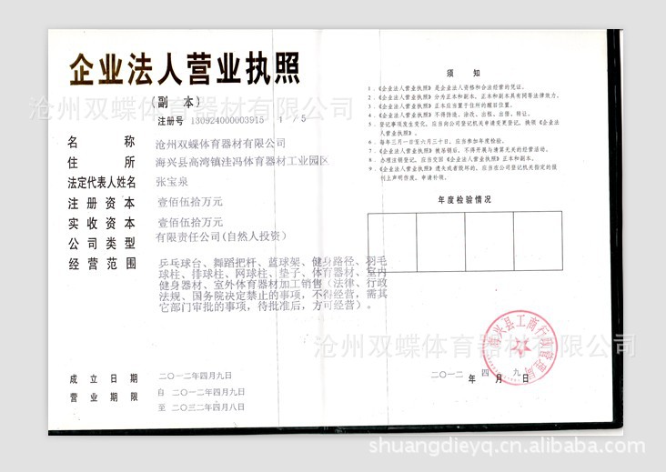 沧州双蝶体育器材有限公司(海兴县双蝶乒乓球台厂)座落于中国北方体育用品生产基地的河北省海兴县高湾镇体育用品开发区。依傍朔黄铁路,京沪铁路和京沪高速公路,北靠京津,与山东半岛及辽东半岛隔海相望,西临205国道,东靠黄骅大港,地理位置优越,交通十分便利。