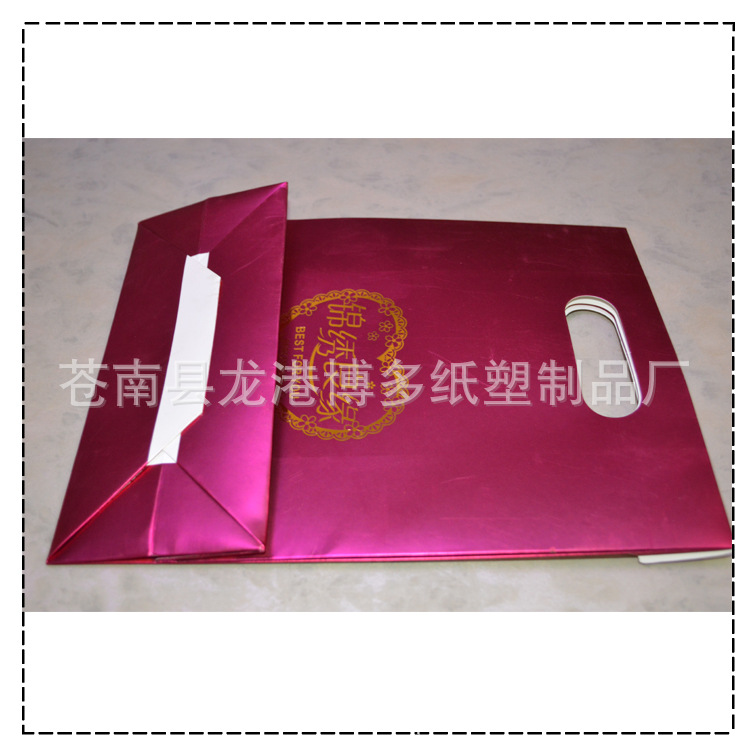 手提袋是用于盛放物品,是较为廉价的容器,因为其一般可以用手提方式携带而得名。制作材料有纸张、塑料、无纺布等。此类产品通常用在厂商盛放产品;也有在送礼时盛放 礼品;现在还有很多时尚前卫的西方人更将手提袋用做包类产品使用,由于手提袋价格低廉且款式多样,可以很好的反映使用人的个性、当时的心情,可与其它装扮相匹配,所以越来越被年轻人所喜爱。手提袋还有被称为手挽袋、手袋等。