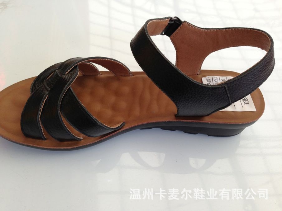 森林狼637816 男士厚跟真皮沙滩鞋 牛皮 舒适沙滩凉鞋 批发