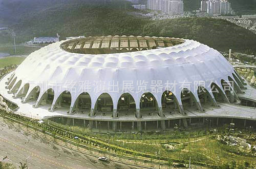 膜结构具有简洁、明快的动感外观以及强烈的形体雕塑性,是刚与柔、力与美的完美结合,能充分表现建筑的人文精神,又极具现代感。