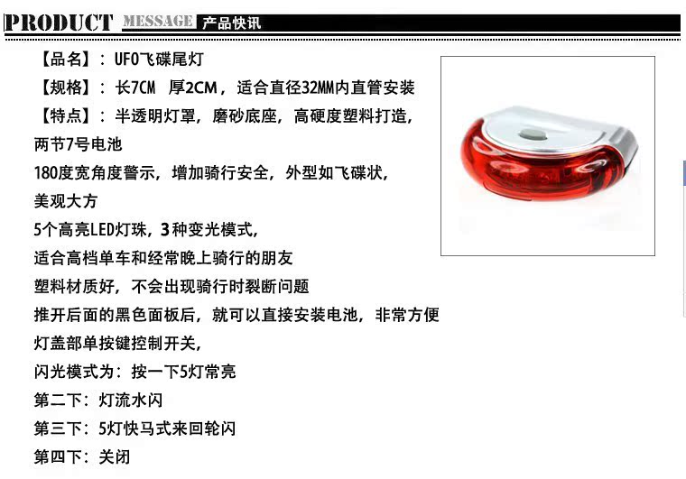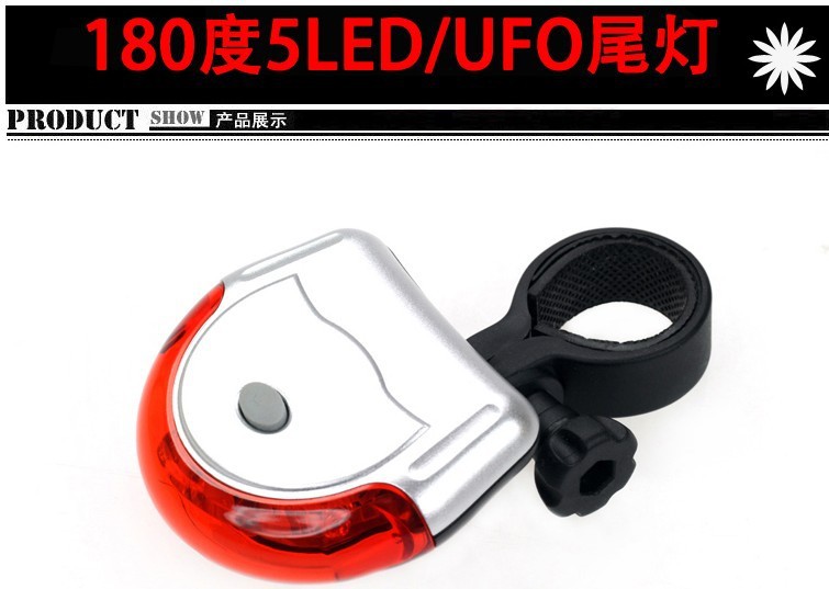 自行车尾灯 山地车尾灯UFO飞碟180度超大视角后尾灯 5LED 警示