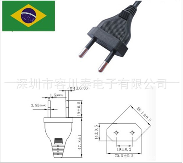 巴西认证电源线 巴西标准三插电源线 巴西品字尾电源线