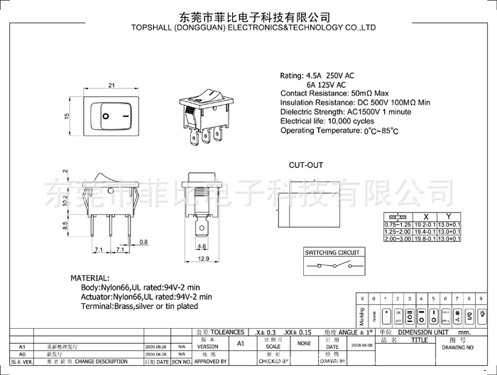 本开关采用优质的原材料加制而成。产品的外型及表面精美,按键的手感很好。其详细分类描述如下列各项: