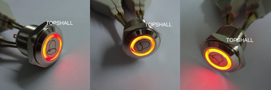 专业供应16mm带灯复位不锈钢门铃按钮开关