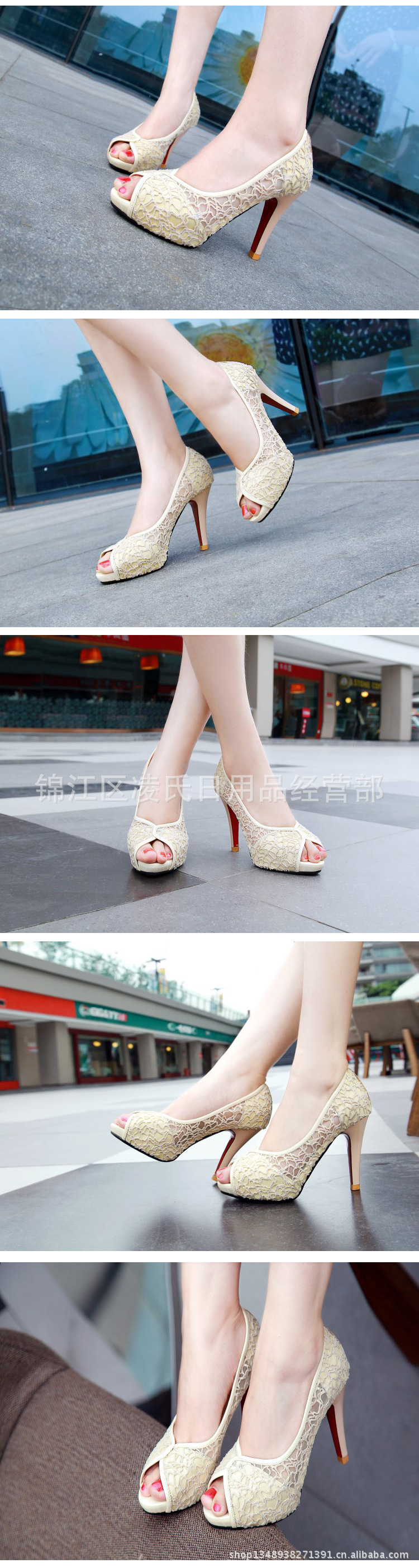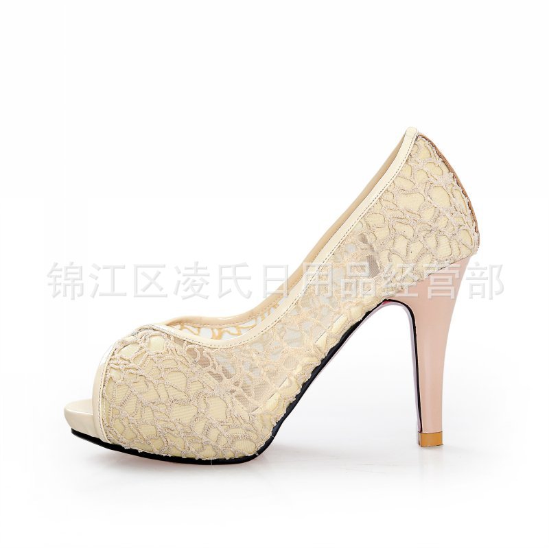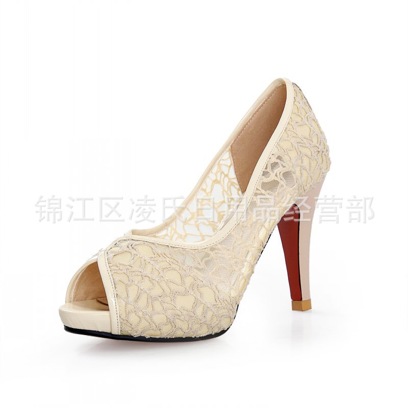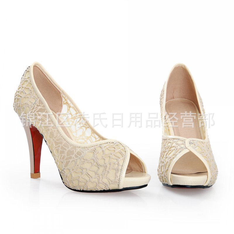 2013年春夏季新款时尚简约性格网状鱼嘴细跟高跟单鞋