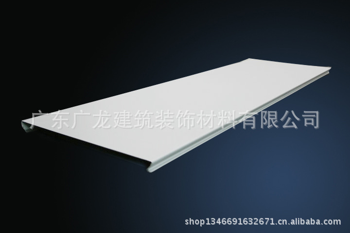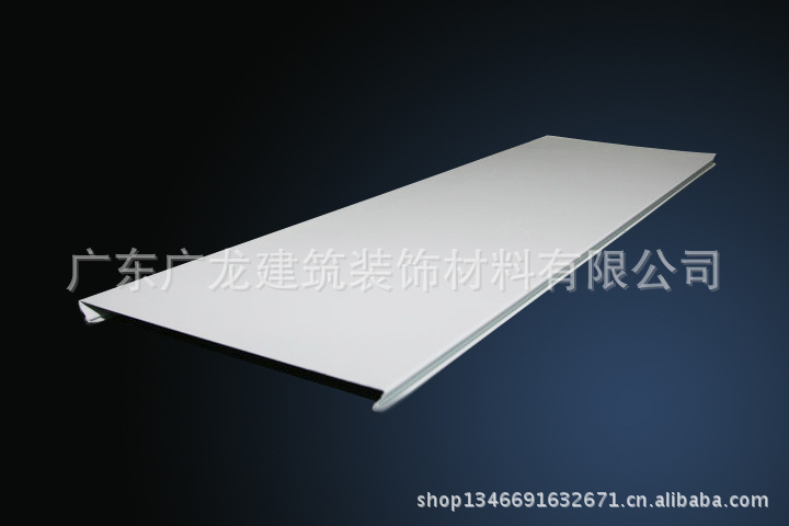 广龙条形扣板常用厚度分为0.5 mm-1.2mm。扣板采用连续辊压成型,常规最大长度尺寸8000mm。