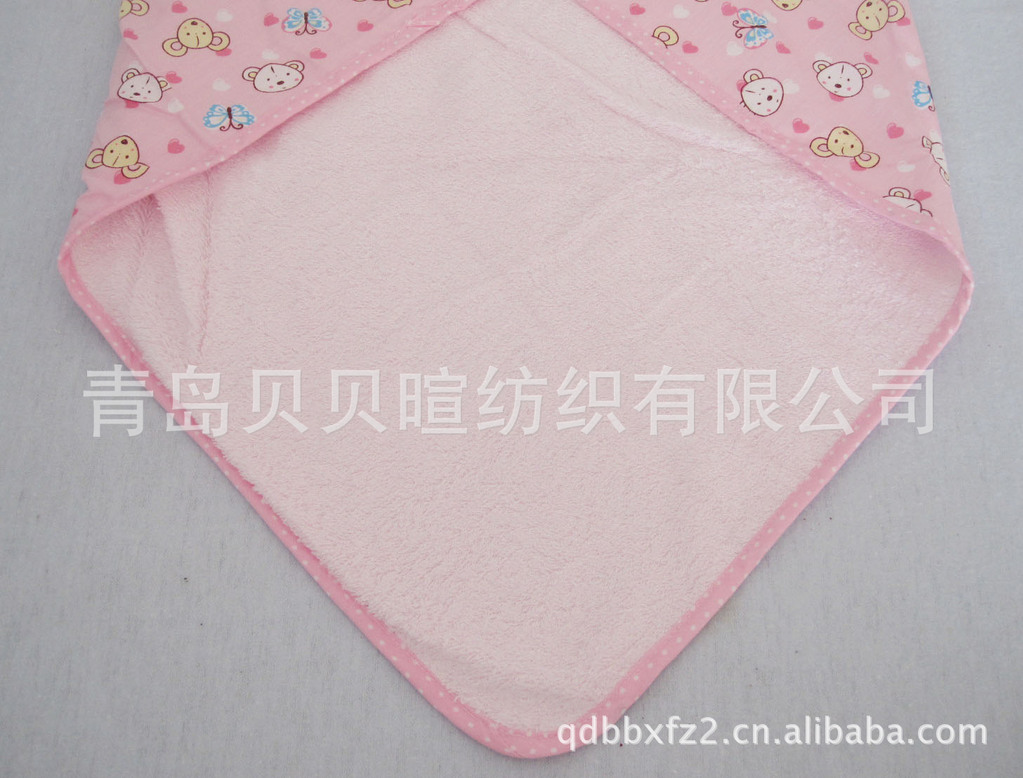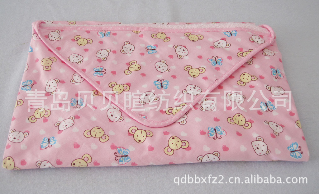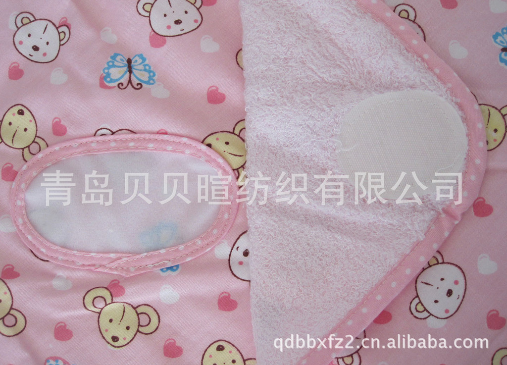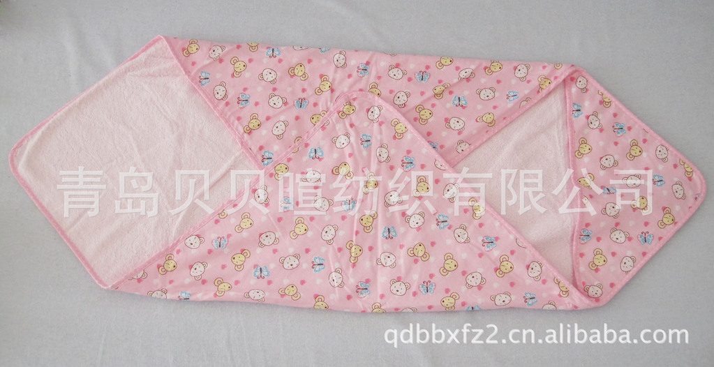 渐渐的进入秋季,空气越来越凉,为了方便带宝宝外出,宝妈不妨为宝宝购置几件婴儿包被。此款婴儿包被外面采用纯棉印花平纹布,里面采用竹棉混织经编竹纤维毛圈布,边缘使用顺色纯棉印花布包边,整体成正方形设计,其中一角有三角形婴儿帽子设计,人性美观实用。