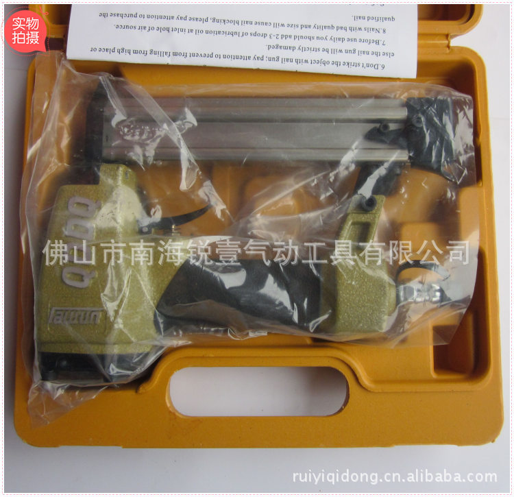 使用说明: 气动钉枪用风管和接头与压缩空气相连,压力达到0.4MPa时即可使用,操作时,在固定弹夹或钉槽 内装上所需规格的钉子,扣动板柄即可实现。使用前从管接头处滴入少许润滑油,使用后,清洁钉枪。