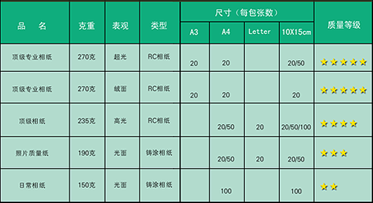 类型:相片纸/喷墨纸