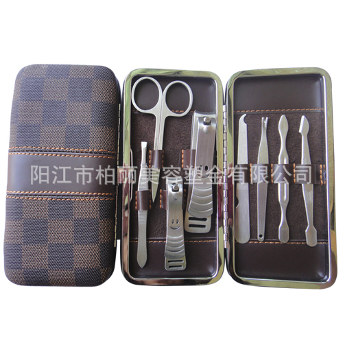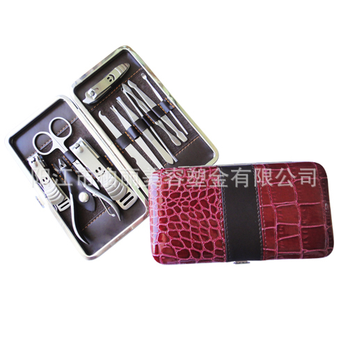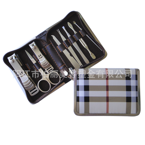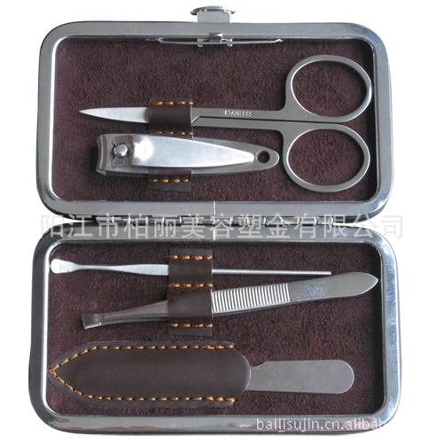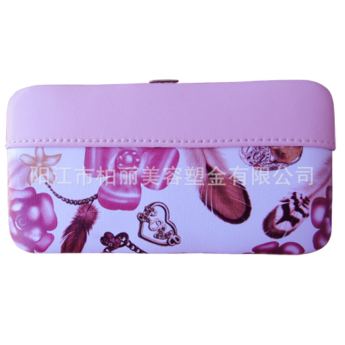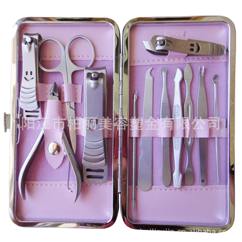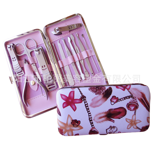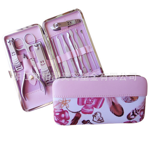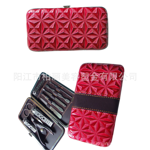 图片上的产品为美容套装修甲工具。用具美甲的携带装。为礼品的最佳选择之一。形式各式各样,外表可为PVC皮料或者是PU皮料,里面的配件的数量和种类可以按客户要求生产。