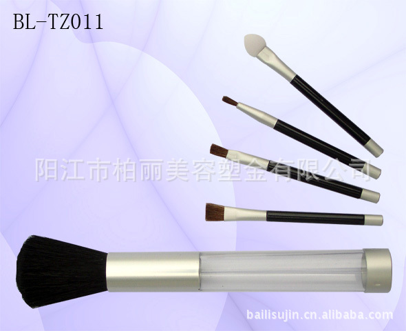 产品说明:筒仔为铝质品,直径3CM。刷子为C9化妆刷5件套。刷子为塑料磨砂手柄,黑色是羊毛,黄色是马毛。