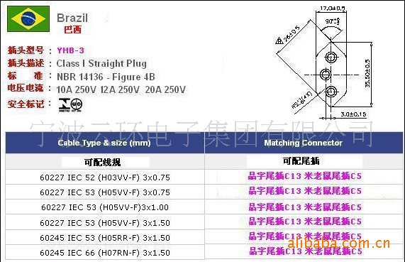 三.公司和证书介绍 宁波云环电子集团有限公司专业生产世界各国标准电源线,插头,插 座,橡胶线,连接线,线束,编织线等。我们的产品已经通过UL,CSA,VDE,CE,PSE, KEMA,IRAM,SAA,BS,KETI,KS,,D,GS,CEBEC,DEMKO,NF等多国的认证, 已及ISO9001-2000质量认证体系。公司的产品畅销欧洲,美洲,澳洲,中东,南非, 亚洲等海外市场;本公司产品符合欧美环保标准,产品价廉物美,质量可靠;本公司 提供OEM,ODM服务,目前拥有一大批稳定的海内外客户,产品90%以上出口,为 许多世界知名企业的冰箱,冷柜,空调,烤炉,洗衣机,厨房设备等各种家电提供高 品质的插头插座和线束。