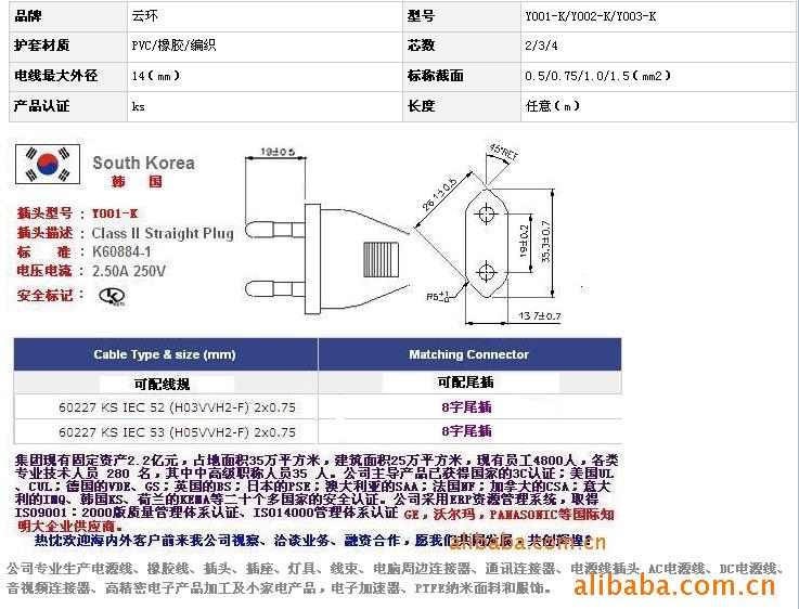 韩国标准二芯电源线