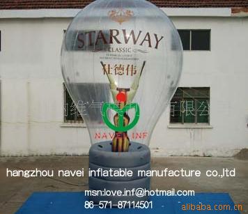 杭州纳维气模制品有限公司是一家国内集研发、生产、销售为一体的专业化企业队伍,拥有一批精湛的研发设计人员、专业的生产技工,并采用电脑辅助设计,制作产品已远销国内、外市场。 主要产品有:各种气模制品、升空气球、落地球、拱门、帐篷、卡通系列、攀岩系列、空中舞星系列、灯笼柱、充气仿真系列、大型充气娱乐城系列、大型水上游乐系列、圣诞节活动系列等。