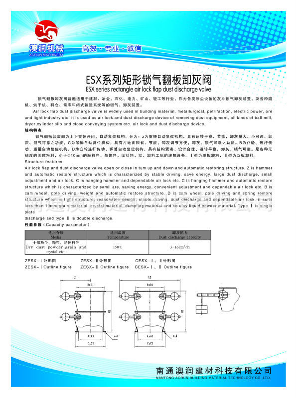 锁气翻板阀为上下交替开闭,自动复位机构。分为:Z为重锤自动复位机构,具有运转平稳、节能、卸灰量大、小可调,卸灰、锁气可靠之功能。C为吊锤自动复位机构,具有占地面积省、节能,卸灰调节方便,卸灰、锁气可靠之功能。B为凸轮、连杆传动,重量自动复位机构;D为凸轮连杆传动,弹簧自动复位机构,具有结构紧凑、设计合理、运转平稳,卸灰、锁气可靠。是各种无粘度的固体粉料,小于Ф10mm的颗粒料,晶体料,团状料,给、卸料工况的理想设备。