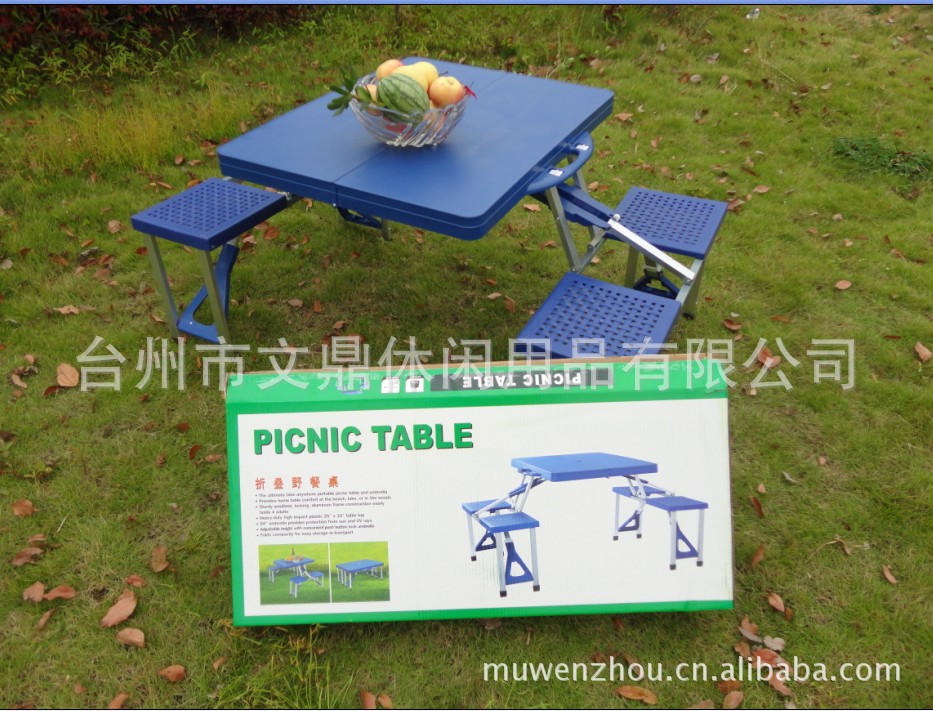 本产品是引进国外最新设计,采用耐用防火板和铝合金材料制造。具有设计新颖,折叠方便,重量轻,易携带,不怕日晒雨淋,美观实用的特点。广泛适用于旅行、户外活动、家居、露台、花园布置,是现代生活必备的新产品。是您野餐、朋友聚会、户外展示活动的最佳选择。本产品质量有保证,在完全展开的情况下桌面可以站人,而不会损坏。本产品清洁简单方便,一般污渍仅需湿布轻轻擦拭即可,对于特别顽固的污渍,也只要用湿布加一点衣粉擦拭即可。