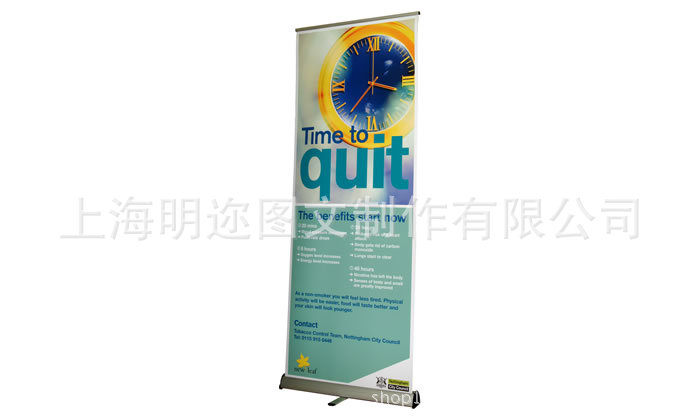 特点:易拉宝装卸方便,画面蜷曲无痕,使用铝合金材质,既牢固又轻盈,应用相当广泛。