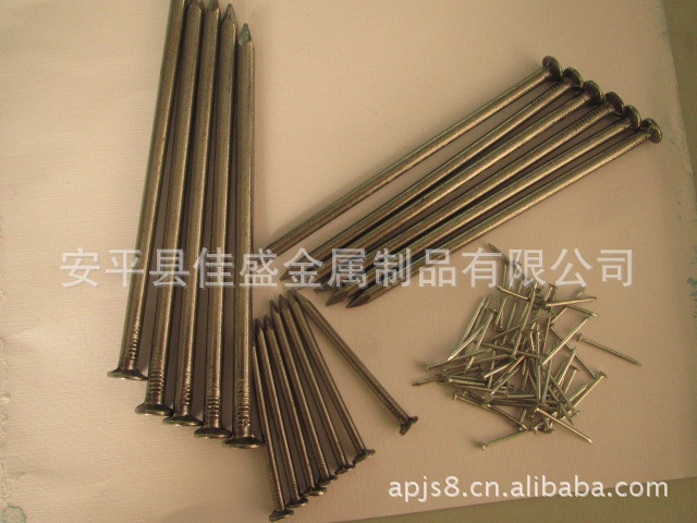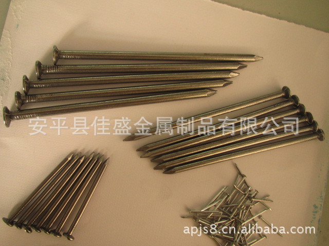 我厂生产各种规格普通铁钉,(普通抛光铁钉,镀锌铁钉)质量优质,出口到欧美、日本、非洲、中东等国家材质:低碳钢Q195,Q215,Q235规格::直径BWG6-16长度1/2"-6
