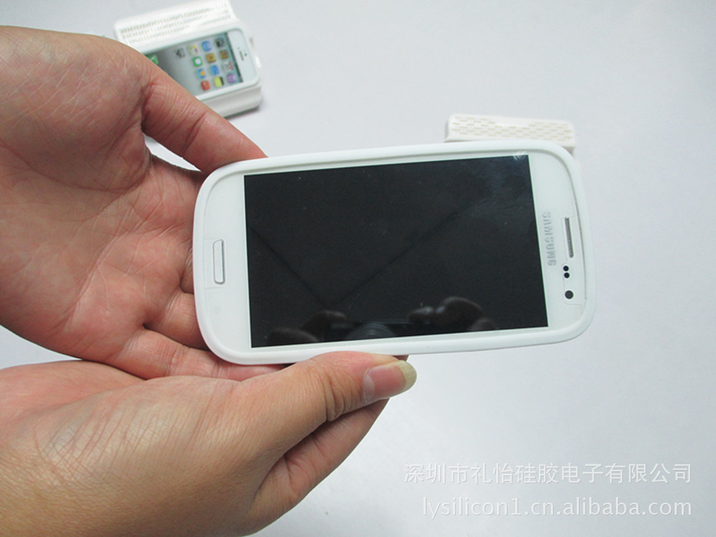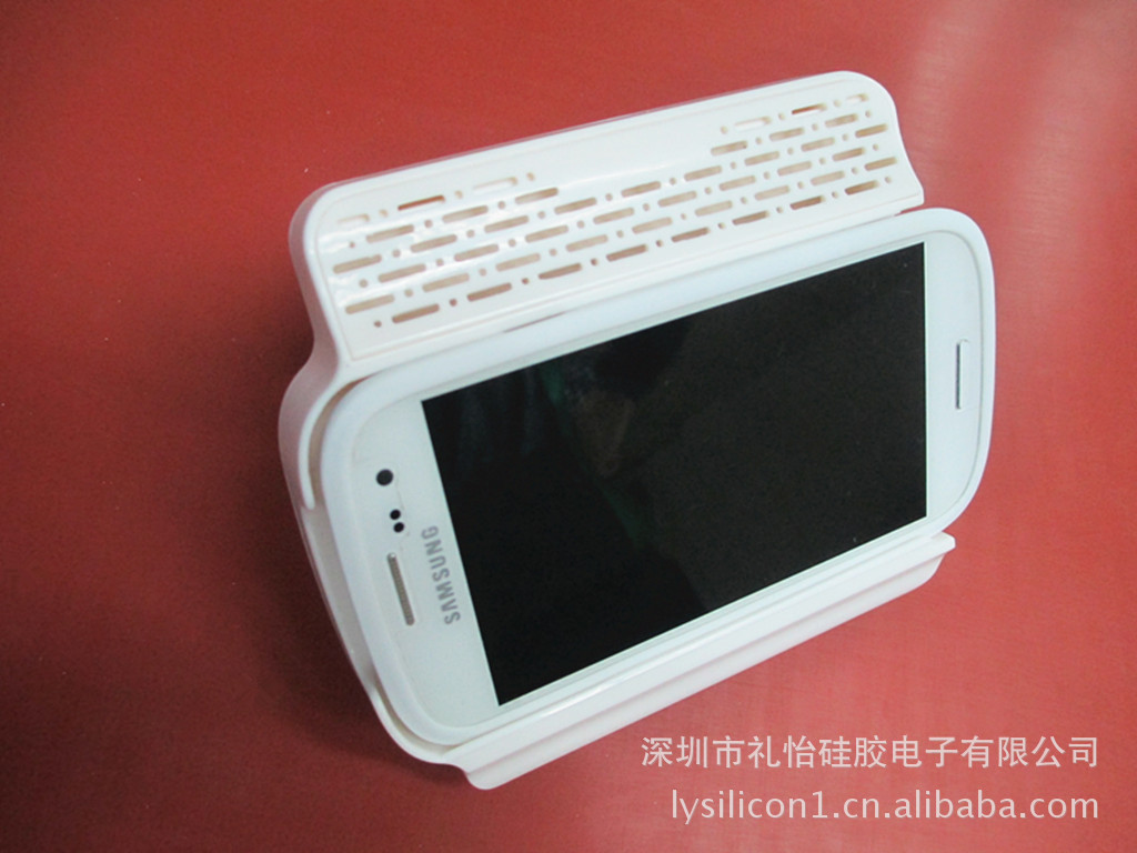 4.将套有硅胶套的手机用了放入疯狂喇叭的对应槽位。