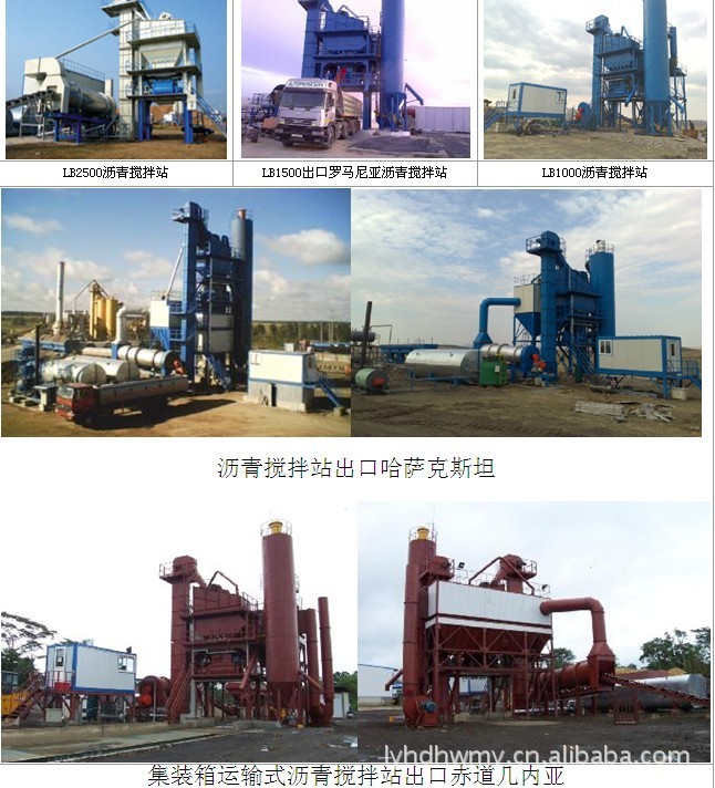 LB系列模块式沥青混合料搅拌设备性能特点简介 1、搅拌楼体纯模块化设计,运输、安装快捷方便,超大废料、溢料分家,结构新颖独特. 2、配料器环行皮带给料机,变频调速,高低可调,独特结构便于更换皮带,使喂料更顺畅,减少了功率的消耗.并带有无料报警灯,方便了客户. 3、高效保温的干燥滚筒,特殊的叶片及料帘形式使热交换更充分,再配以高效节能的进口燃烧器,重、柴油两用,节约了能源的消耗. 4、振动筛采用振动体外置直线式全封闭结构,筛分效率高,维护、更换筛网方便,进口承轴更可靠. 5、热骨料仓装有连续式料位器,操作人员可一目了然.并且骨料的计量采用大小门二次计量,大大提高了计量精度.特殊结构的料门,不易卡料,工作更可靠. 6、采用欧洲技术设计的搅拌主机,双减速电机,高速端同步.称好的沥青,经泵直接喷入拌锅,粉料经螺旋撒入拌锅,使搅拌更均匀而迅速.并预留有木质纤维添加接口及旧料再生入口. 7、除尘系统采用进口诺美克斯布袋,使排放到大气中的粉尘浓度小于50mg/Nm3,完全满足国家环保要求。清吹下来的粉尘,经粉提进入回收粉罐,重新利用,避免了二次污染。 8、控制系统采用当今在工业自动化领域领先的SIEMENS整体解决方案,使用PROFIBUS现场总线,组成一个中大型的分布式自动化系统,在操作方式上,采用双工业计算机热备份,动态显示,无按钮、由鼠标完成各种操作,实时故障监测控制,具有参数设定、数据管理、故障诊断等功能。计量精确,可实现自动、半手动和手动控制,性能稳定可靠。