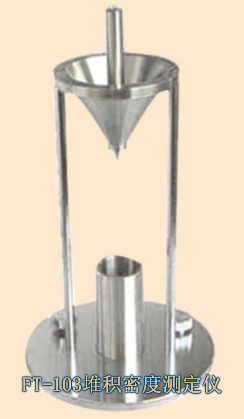 FT-103A活性白土堆积密度测定装置原理:粉尘从漏斗口在一定高度自由落下充满量杯;测定松装状态下量杯内单位体积的质量,即堆积密度。
