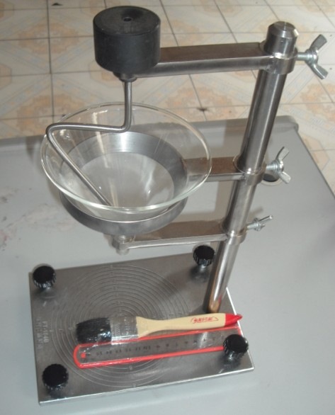 四、技术参数1.漏斗(出口2.5mm和5.0mm各一个)漏斗不锈钢或黄铜材料制成,且具有足够的壁厚和硬度,以防变形和过度磨损。2.支架、底座和接收量筒支架用以固定漏斗。底座用于安装支架和接收量筒,请调整水平、稳固且无振动。调整支架高度并用附带的扳手固定住,将漏斗安装到支架上。接收量筒(不锈钢盘)置于底座上,用来收集粉末。3 .天平(用户自备)最大称量100g;精度0.05g。4.量杯本装置配备一只容积为25ml的不锈钢量杯。用户可参照国标GB 1479-84的规定完成金属粉末松装密度的测定(漏斗法)。5.仪器由控制箱电气部分和试验部分组成,自动开启出料口计时。试样流出后停止计时。6.本仪器可以选购配置打印机和软件系统。测试完,自动打印出测试结果瑞柯『伟业』仪器生产部提示,还有相关联产品FT-102A震动漏斗松装密度测定仪,FT-100A振实密度测定仪;FT-101斯柯特容量计松装密度测试仪,FT-102霍尔流速计/松装密度测试仪-不锈钢材质;FL4-1霍尔流速计/粉末流动性测定仪-黄铜材质