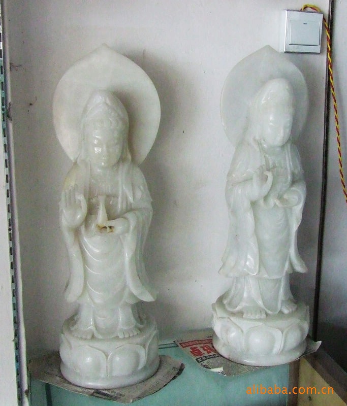 这批神像,种色不错,雕工也好。只要心诚了,请的价钱好商量!最大高75cm,最小的高25cm.一批走,价格可谈。